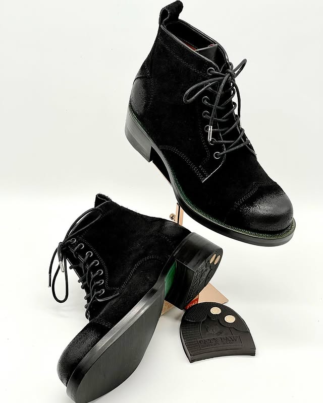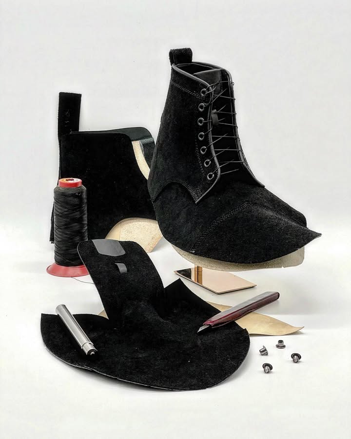 Eugo is a third-generation shoemaker who trained in bespoke and orthopaedic shoe design at the London College of Fashion (2000–2004). He blends clean, timeless design with a comfort-first approach.